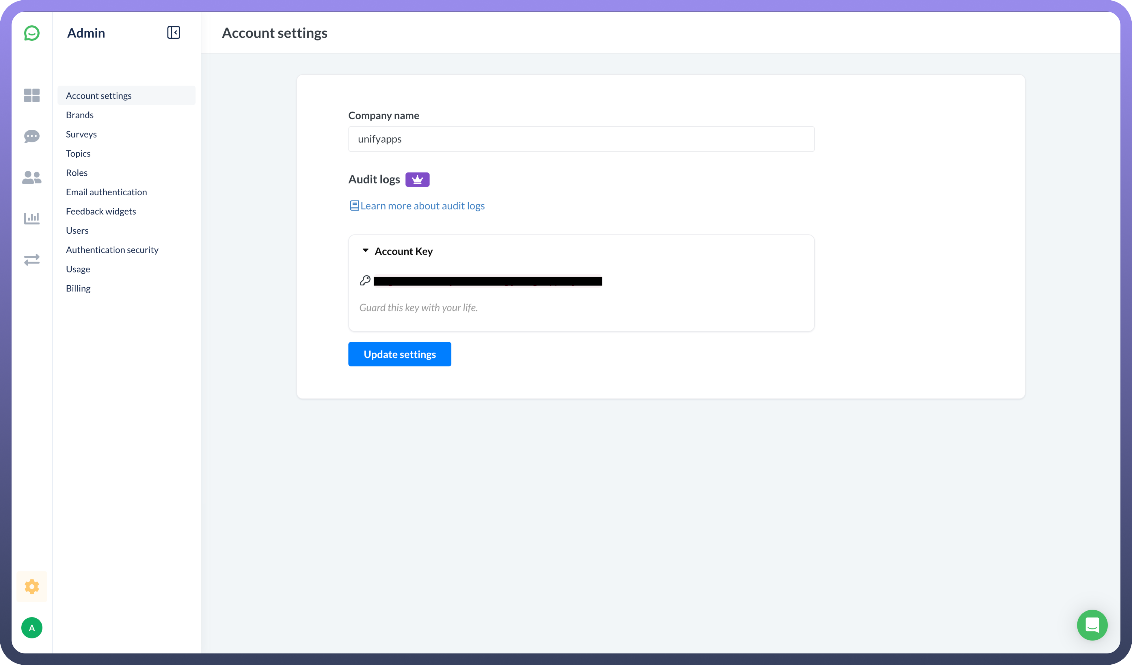 Navigate to the API Key section by clicking on your setting icon and selecting '